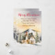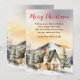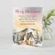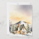 This beautiful and festive watercolor Christmas card can be personalised with your family name. It features a rustic winter cottage surrounded by snow, mountains and trees. There are adorable animals, such as a cat and deer, and also mushrooms, acorns and foliage. The text combines handwritten script and sans serif fonts for a stylish and modern look.
