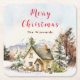 Winter Holiday Cottage Merry Christmas Square Paper Coaster