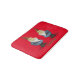 This rug is just as pictured! Vibrant Red and very soft material, nice to step in out of the tub! Matches my set of accessories and shower curtain! A must have to add some whimsy to your bathroom! Very nice, vibrant and clear print! Beautiful!
