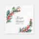 Beautiful sprigs of holly in watercolor shades of red, green and blue-green frame your custom text in this winter themed paper napkin. It makes a lovely choice for December weddings and events or special occasions in the winter months.