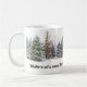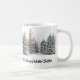 This winter season mug features snow-covered forest trees in the background and the text " Winter is not a season it's a celebration. Happy Winter Solstice. Use the mug for your celebration and throughout the winter season.