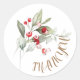 Winter holiday holly RED BERRY branches Classic Round Sticker
