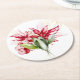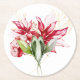 Winter holiday red poinsettia watercolour flowers round paper coaster