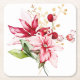 Winter holiday red poinsettia watercolour flowers square paper coaster