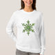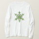 Winter themed female long-sleeve T-shirt with a beautiful snowflake made of pine branches. A red Christmas ball is hanging on one of the pine branches.