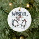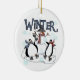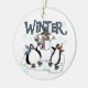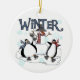 Two penguins and a snowman ice skate and text reads "Winter" on a keepsake ornament that's perfect for anyone who loves penguins and snowmen!