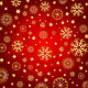 The image is a rich, elegant holiday backdrop built on a deep red gradient that moves from a darker crimson at the edges to a softer, glowing red toward the center. Scattered across the entire scene are golden snowflakes and stars, each one crisp, luminous, and intricately detailed.