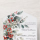 Let our watercolor holly invitations be the first glimpse into your magical winter wedding. Create an unforgettable first impression with a design that speaks to the elegance and romance of the season. The All-in-One wedding invitations are both beautiful and practical by combining the wedding invitation with an easy to remove perforated RSVP postcard. They are also quick and easy to prepare for mailing. Simply address the invitation, fold the back flap and seal with the included clear stickers. Once your guests receive the pre-addressed invitation they simply tear off the perforated RSVP card and drop it in the mail. The addition of the QR code allows your guests to easily access your wedding website for information including reception details and dinner choices! Simply replace the sample URL with the URL from your wedding website.