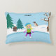 Winter scene girl's accent pillow personalised with child ice skating and 3 dogs watching.