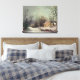 The image on this canvas prints called "Winter in the Country." It is by Currier, and Ives. It shows a lovely country scene with a house, trees, and snow.