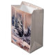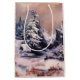 This design features a painting by the American artist Thomas Moran (1837–1926). It shows a wintry scene in the Rocky Mountains, which are are a major mountain range in North America. There is a deer standing alone in a snowy white landscape. The tall fir trees are covered with a heavy coating of snow. There are some birds resting on some of the branches. The sun is shining through the clouds in the sky. The original artwork was painted by Thomas Moran in 1867.