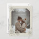 Invite your closest family and friends to an intimate celebration after your private vows or city hall wedding. Send out holiday postcards and at the same time invite them to a cosy wedding dinner. This customisable holiday postcard featuring a romantic snowy design decorated by delicate snowflakes and the sweet phrase “Forever starts this winter.” Add your favourite photo and personalise it with names, dates, or a heartfelt message. Perfect for couple wanting a small intimate wedding this winter.