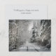 Embrace the winter wonderland with our stunning winter landscape postcard. Let the tranquil snow-covered forest and peaceful snowfall take you on a journey through the beauty of this season. Customise the front and the back with your own text and wishes to add a personal touch to this elegant and timeless design.