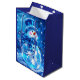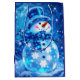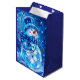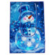 A beautifully crafted gift bag adorned with the enchanting scene of a glowing snowman on a serene winter night. The bag’s design features a vibrant illustration of the snowman, complete with a top hat and scarf, standing amidst a snowy landscape. The background is a blend of deep blues and crisp whites, evoking the chill of a winter evening.