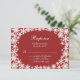 Delicate snowflakes in a lacy pattern on a cranberry red background, accent this coordinating RSVP for the Winter Lace Wedding Invitation.