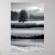 Winter landscape, snow-covered, sun-drenched with frozen water surface. A play of light and shadows