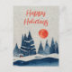 Winter Landscape Forest Moon Navy Blue Drawing Holiday Postcard