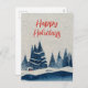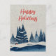 Winter Landscape Forest Navy Blue Drawing Holiday Postcard. Calm winter snow landscape with forest. Happy holidays in a trendy script. You can change the text.