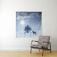 Winter landscape in blue colour. Lonely tree and w Tapestry