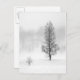 Winter landscape with snow and fog. In front a small birch tree and back a bigger tree. An almost black and white photo, but natural colors because of the snow and the fog.