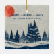 Winter Landscape Snowy Forest Moon Photo Christmas Ceramic Ornament. Calm snowy winter nature. Happy, merry, jolly and your family name - add your text.