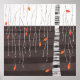 The Last of the Leaves. Minimalist contemporary landscape painting featuring a tree in late autumn or fall, at the beginning of winter with bright colourful falling leaves on a monochrome black and white abstract background. Original art by Nic Squirrell.