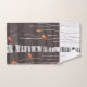 The Last of the Leaves. Minimalist contemporary landscape painting featuring a tree in late autumn or fall, at the beginning of winter with bright colourful falling leaves on a monochrome black and white abstract background. Original art by Nic Squirrell.