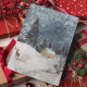 Winter landscape Watercolor Holiday Cabin Deer Postcard