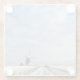 Glass photo coaster with a minimalistic view on a winter landscape in Holland with a path and a canal towards a windmill under a layer of snow with nice clouds at sunrise in the dutch countryside.
