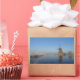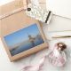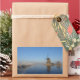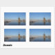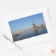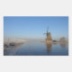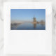 Rectangular photo sticker of a landscape in the countryside in the Netherlands with a windmill, ice on the river and frosted reeds under a clear blue sky.