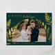 A chic and elegant holiday card design featuring a single horizontal or landscape-oriented photo in a unique arched layout, embellished with finely detailed botanical foliage in luxe gold foil. "Happy Holidays" appears at the top left, with your family name along the bottom. A refined nature-inspired choice for your Christmas 2022 greetings.