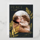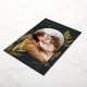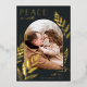 A chic and elegant holiday card design featuring a single vertical or portrait-oriented photo in a unique arched layout, embellished with finely detailed botanical foliage in gold foil. "Peace on Earth" appears at the top left, with your family name at the lower right. A refined nature-inspired choice for your Christmas 2022 greetings.