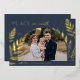 A chic and elegant holiday card design featuring a single horizontal or landscape-orientated photo in a unique arched layout, embellished with finely detailed botanical foliage in luxe gold foil. "Peace on Earth" appears at the top left, with your family name along the bottom. A refined nature-inspired choice for your Christmas 2022 greetings.