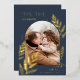 A chic and elegant holiday card design featuring a single vertical or portrait-orientated photo in a unique arched layout, embellished with finely detailed botanical foliage in gold foil. "Tis the Season" appears at the top left, with your family name at the lower right. A refined nature-inspired choice for your Christmas greetings.