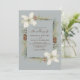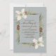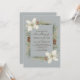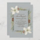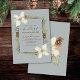 Winter pine cones and white flowers on a light grey with elegant script wedding invitation.