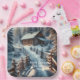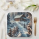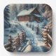 Winter Log Cabin on a Snowy Day Christmas Paper Plate