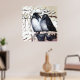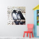 WINTER LOVE BIRDS IN SNOW Black White Poster