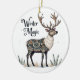 Embrace the enchanting spirit of winter with this "Winter Magic" reindeer ornament. Adorned with intricate Nordic-inspired patterns on its coat and set against a snowy forest backdrop, this majestic reindeer captures the essence of a magical winter wonderland. Ideal for adding a touch of festive charm and folkloric style to any holiday display.