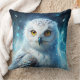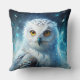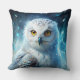 Winter Magic Snowy Owl Mystic Blue Throw Pillow