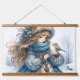 Winter Maiden in Blue Snowy Countryside Hanging Tapestry