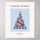 A cute colourful Christmas tree in a baby blue background, featuring abstract shapes with a mid century modern design. A festive and modern design for the Christmas season.