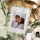 Share holiday greetings with these photo Christmas cards featuring your favourite photo set on a modern and minimal white background with a green botanical border trimmed in gold foil. An editable message area lets you customise your holiday greeting in modern lettering. Add your family name or names beneath.
