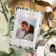 Share holiday greetings with these photo Christmas cards featuring your favourite photo set on a modern and minimal white background with a wintry blue botanical border trimmed in gold foil. An editable message area lets you customise your holiday greeting in modern lettering. Add your family name or names beneath.