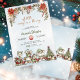 Bring a sprinkle of holiday magic to your baby shower with this whimsical winter puppy invitation, where adorable cartoon dogs and festive florals announce the arrival of your "little merry" one! Set against a soft, snowy blue background dusted with shimmering snowflakes, this design creates a cozy, enchanting atmosphere perfect for December celebrations, gender-neutral winter themes, or pet-loving families. The top features an elegant arch of watercolor-style red poinsettias, creamy white blooms, golden pinecones, lush evergreen branches, and clusters of ruby-red berries, all framed with delicate greenery for a sophisticated yet playful holiday vibe.