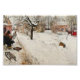 A 19th century landscape painting by Swedish artist Carl Larsson. Painting depicts family watching a man painting a snowy farm scene.