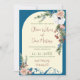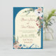Winter Mountain Flowers Wedding Invitation with beautiful winter white and pink champagne flowers, winter pine greens and red berries on a beautiful winter blue background. Front of card allows for customisation with your own wedding information. Back of card features a beautiful bouquet of pink blush, winter greens and red berries and a mountain silhouette. See our beautiful Winter Mountain Flowers Wedding Collection for additional beautiful matching and coordinating stationery, envelopes and wedding supplies.