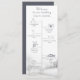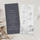 This winter mountain forest timeline wedding program is perfect for a destination wedding. The design features a hand-painted forest on hills and mountains in an idyllic winter scene.