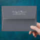 This winter mountain forest wedding envelope is perfect for a destination wedding. The design features a hand-painted forest on hills and mountains in an idyllic winter scene.