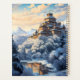 This planner features a winter illustration of a mountain fortress built on a hill and surrounded by a thick forest. Snow caps all of the trees and an ice-covered pond sits at the bottom of the hill, its glass surface reflecting the fortress. The design is the same on the front and back covers. Personalise the front with the current year.