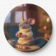 A cute little female mouse drinking tea near a Christmas tree. A lovely plate for your Christmas parties! Look for the matching items in my store.